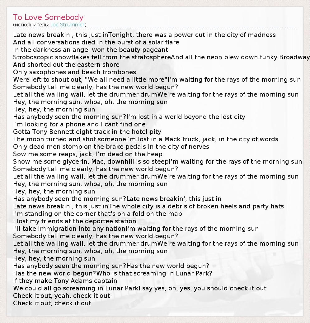 А как ты думаешь, о чем песня "To Love Somebody" ?