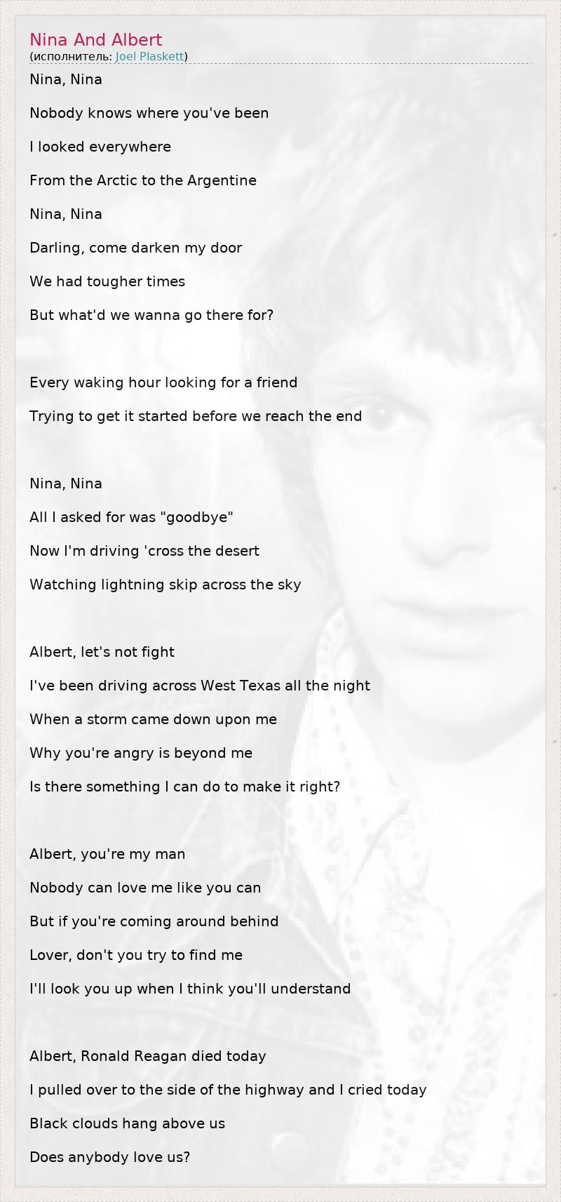 А как ты думаешь, о чем песня "Nina And Albert" ?