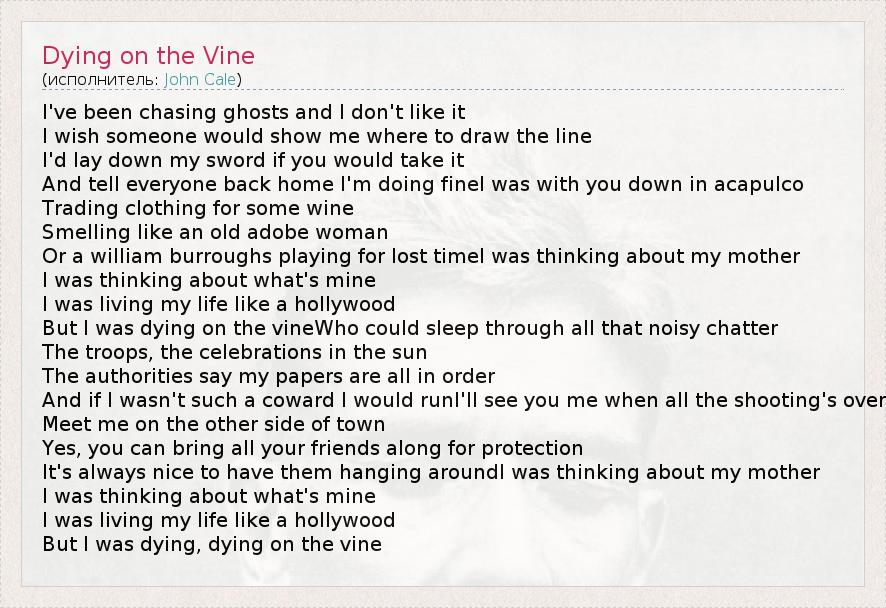 А как ты думаешь, о чем песня "Dying on the Vine" ?