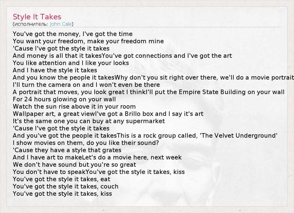 А как ты думаешь, о чем песня "Style It Takes" ?