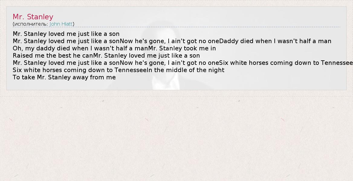 А как ты думаешь, о чем песня "Mr. Stanley" ?