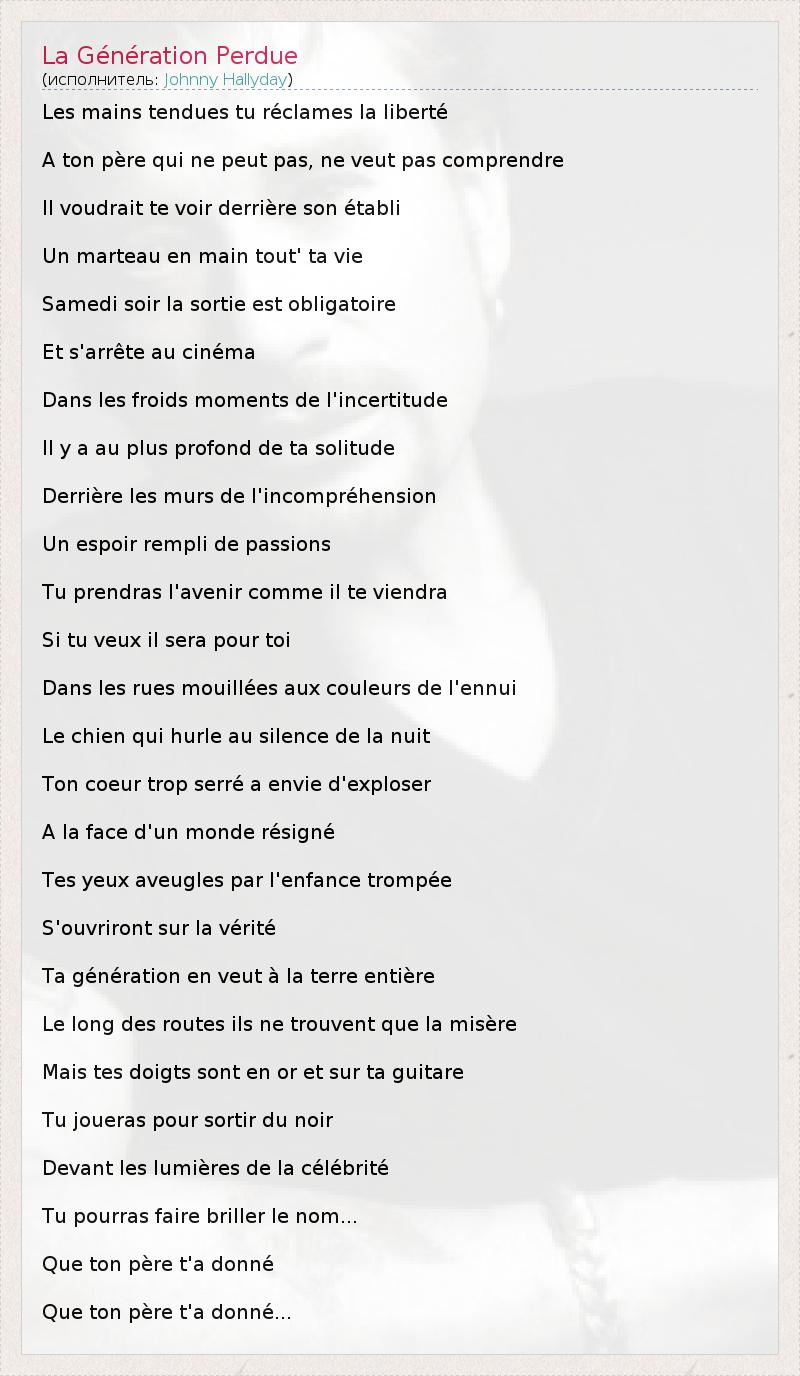 А как ты думаешь, о чем песня "La Génération Perdue" ?
