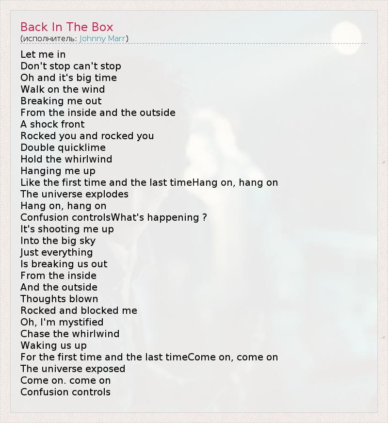 А как ты думаешь, о чем песня "Back In The Box" ?