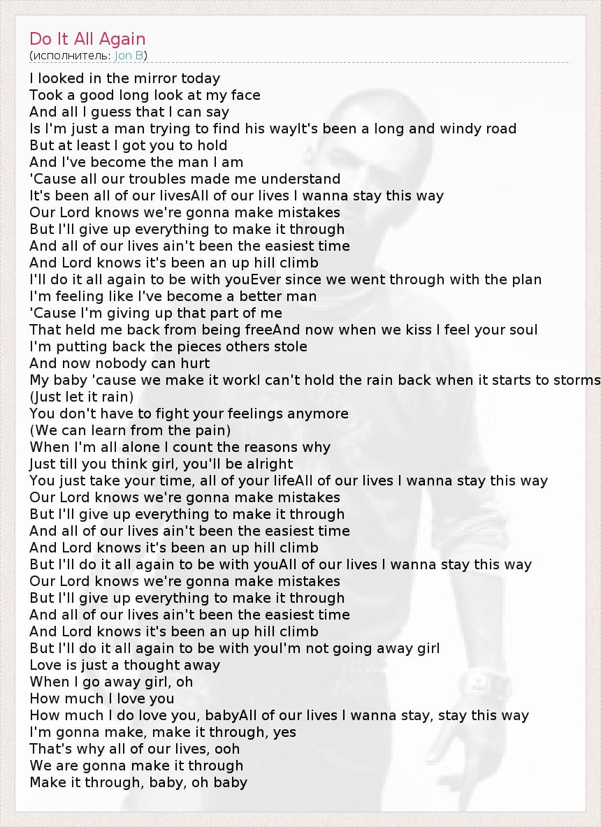 А как ты думаешь, о чем песня "Do It All Again" ?