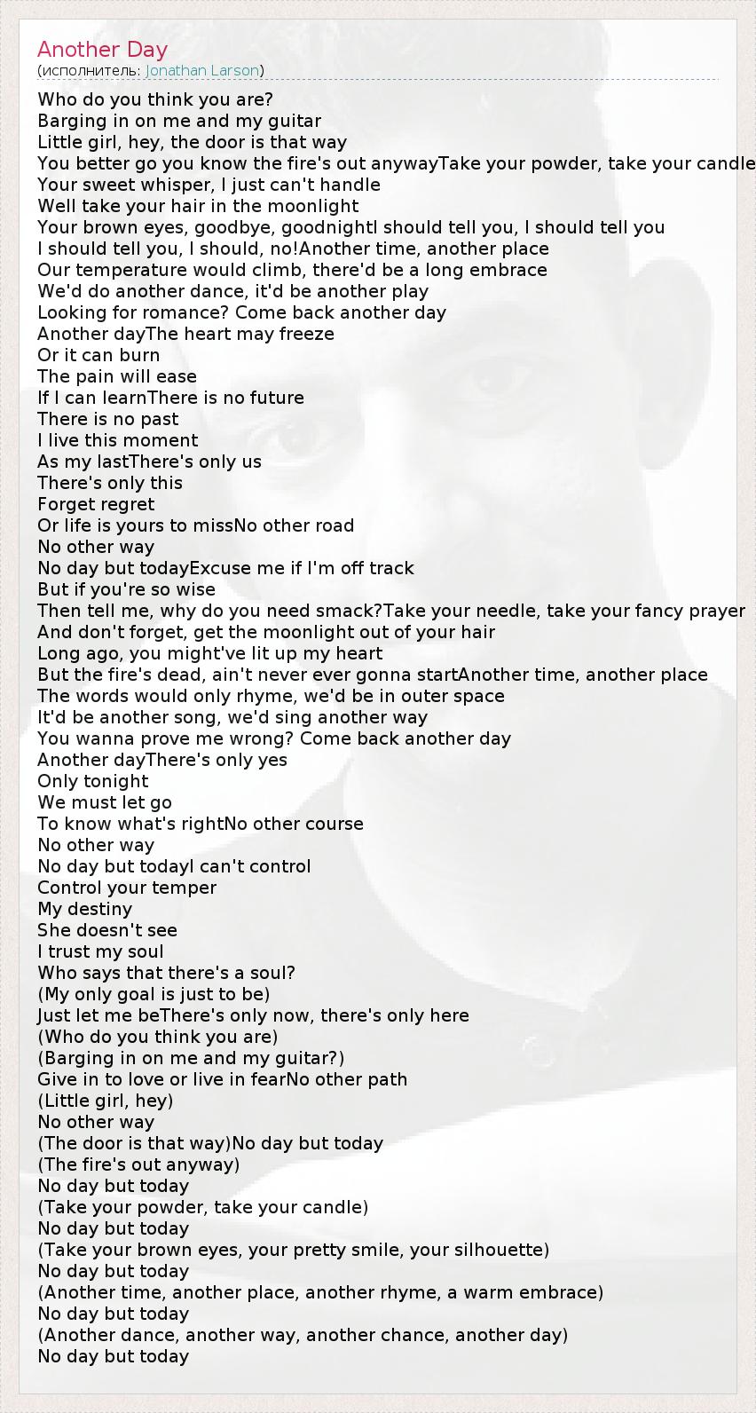 А как ты думаешь, о чем песня "Another Day" ?