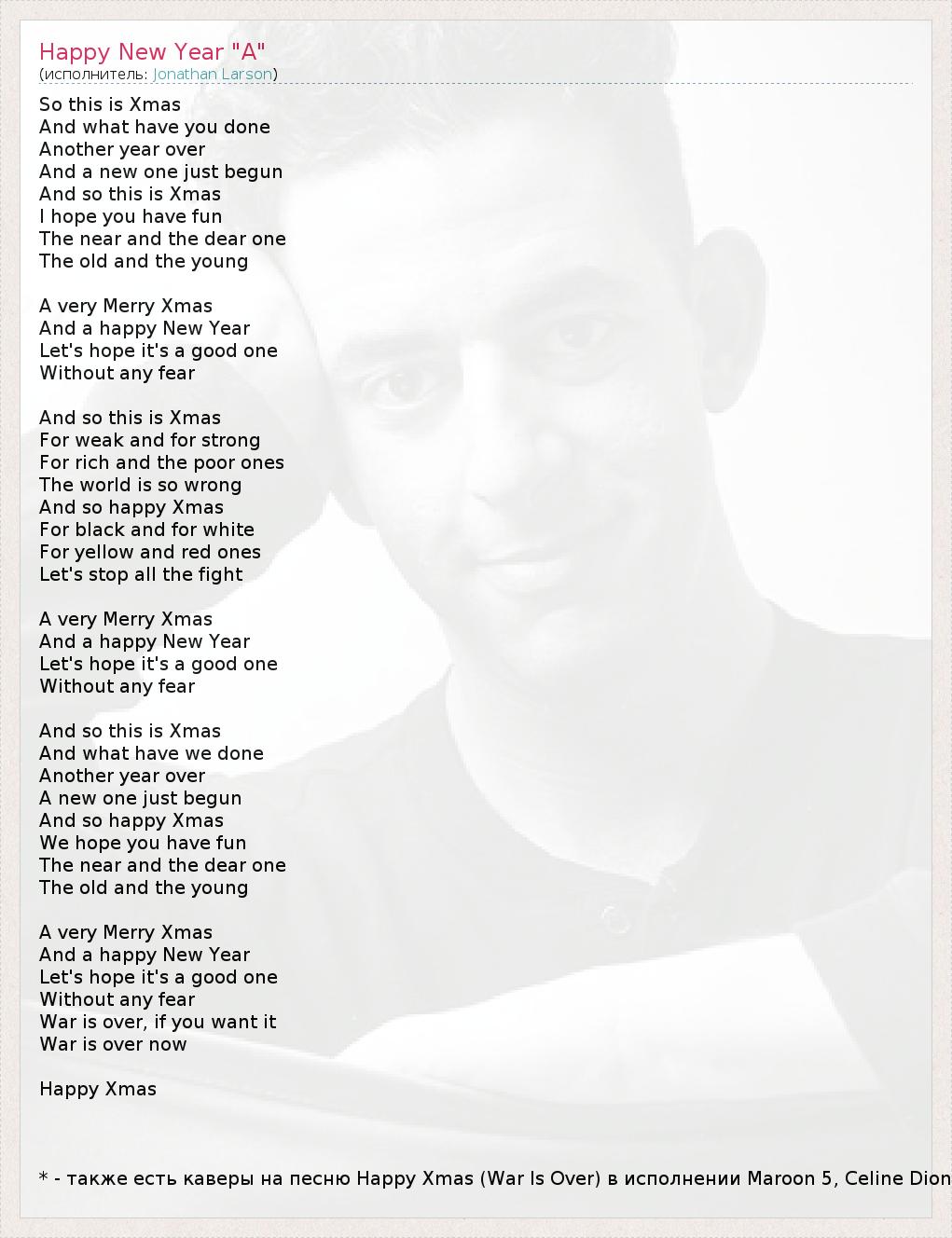 * - также есть каверы на песню Happy Xmas (War Is Over) в исполнении Maroon 5, Celine Dion