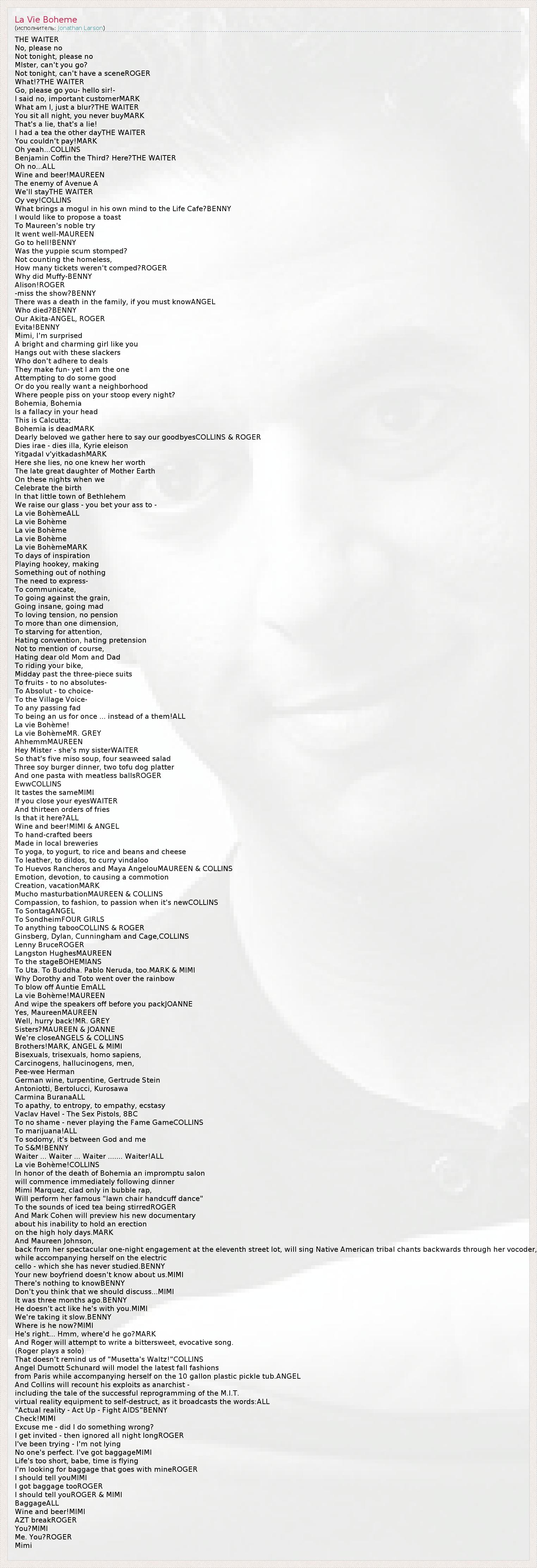 А как ты думаешь, о чем песня "La Vie Boheme" ?