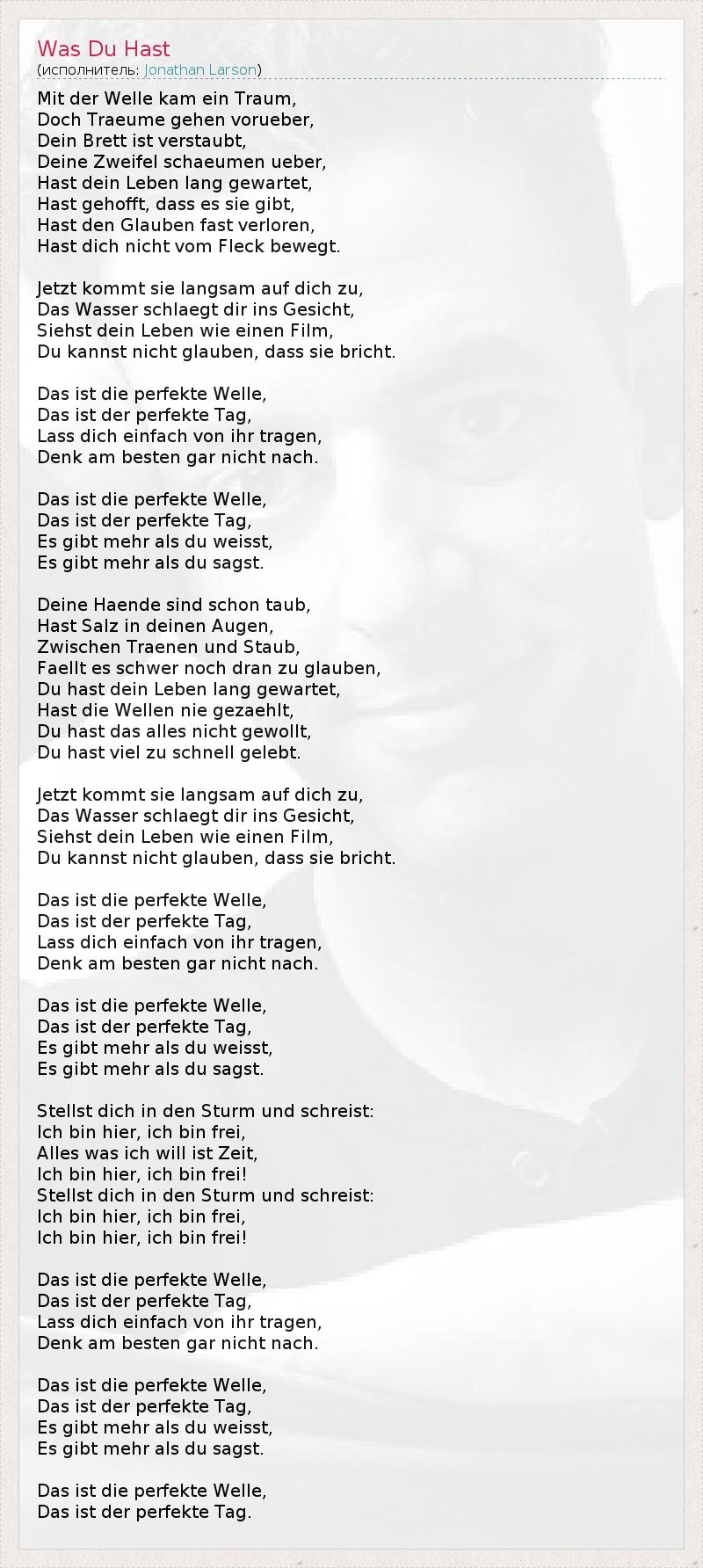 А как ты думаешь, о чем песня "Was Du Hast" ?