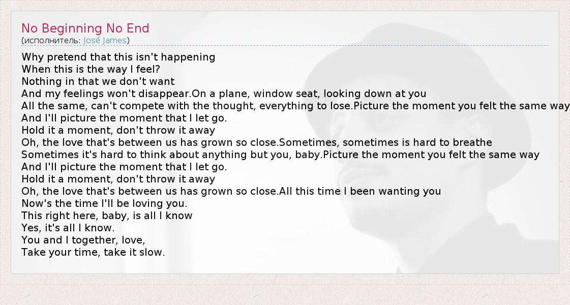 А как ты думаешь, о чем песня "No Beginning No End" ?