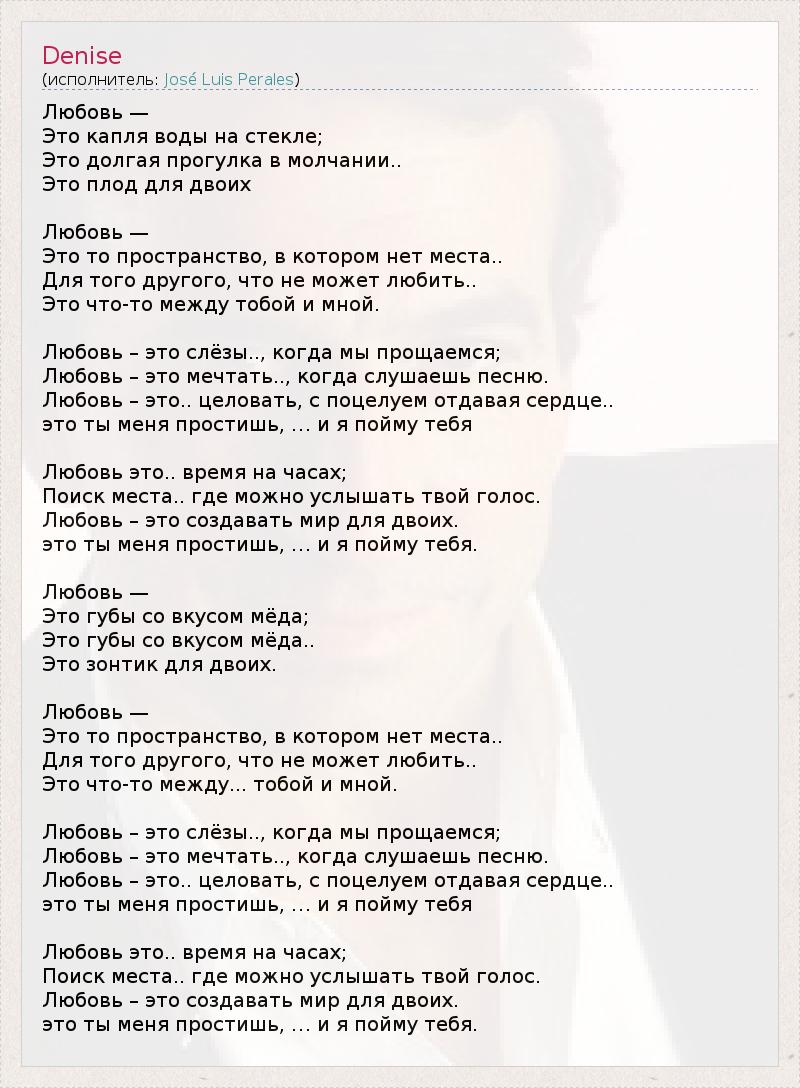 Это интересно:José Luis Perales José Luis Perales Birth name José Luis Perales Morillas Born 28 January 1945 (1945-01-28) (age 66)Castejón, Cuenca, Spain Genres BaladaRomantic music Occupations Musician, Songwriter Instruments Guitar, Vocals Years active 1972-present Labels Hispavox, Sony Music / BMG, Columbia Records Website http://www.joseluisperales.net/ (Spanish) José Luis Perales (born January 28, 1945 in Castejón, Cuenca Province) is a Spanish singer-songwriter and composer who is very popular in Spain and Latin America. He has performed some of his extensive work... продолжение