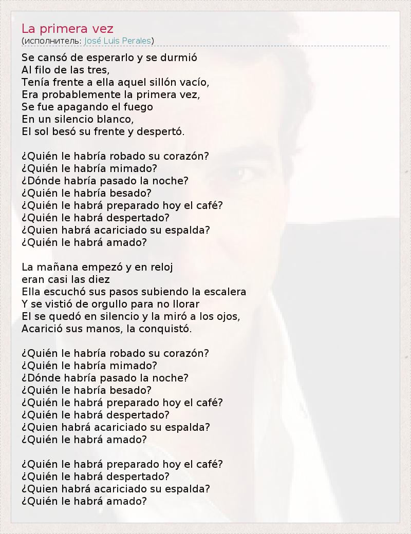 Это интересно:José Luis Perales José Luis Perales Birth name José Luis Perales Morillas Born 28 January 1945 (1945-01-28) (age 66)Castejón, Cuenca, Spain Genres BaladaRomantic music Occupations Musician, Songwriter Instruments Guitar, Vocals Years active 1972-present Labels Hispavox, Sony Music / BMG, Columbia Records Website http://www.joseluisperales.net/ (Spanish) José Luis Perales (born January 28, 1945 in Castejón, Cuenca Province) is a Spanish singer-songwriter and composer who is very popular in Spain and Latin America. He has performed some of his extensive work... продолжение