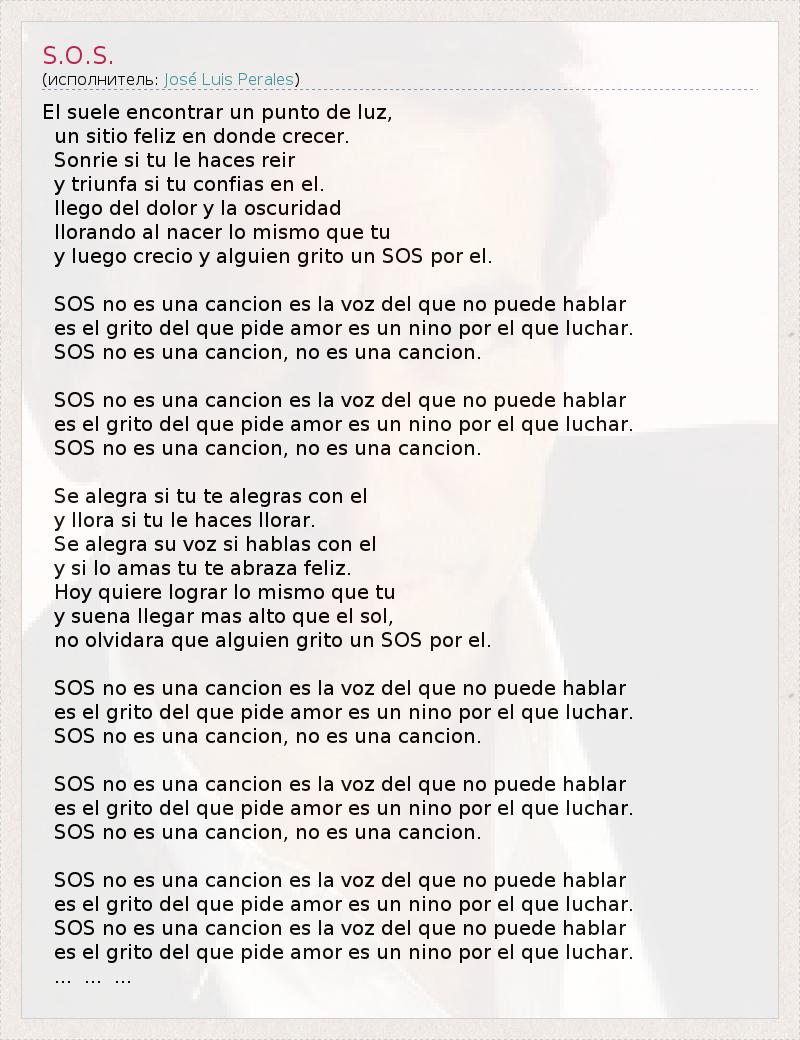 Это интересно:José Luis Perales José Luis Perales Birth name José Luis Perales Morillas Born 28 January 1945 (1945-01-28) (age 66)Castejón, Cuenca, Spain Genres BaladaRomantic music Occupations Musician, Songwriter Instruments Guitar, Vocals Years active 1972-present Labels Hispavox, Sony Music / BMG, Columbia Records Website http://www.joseluisperales.net/ (Spanish) José Luis Perales (born January 28, 1945 in Castejón, Cuenca Province) is a Spanish singer-songwriter and composer who is very popular in Spain and Latin America. He has performed some of his extensive work... продолжение