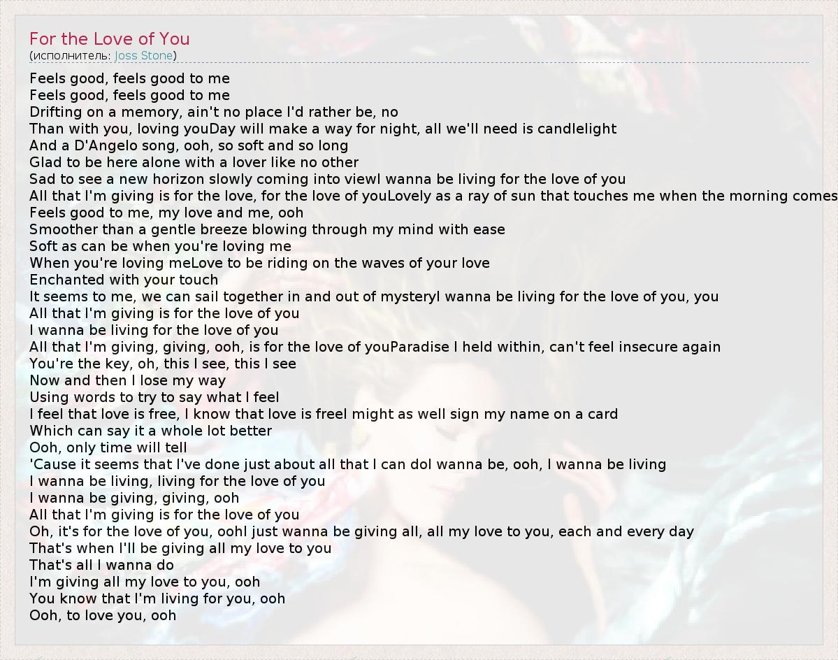 А как ты думаешь, о чем песня "For the Love of You" ?