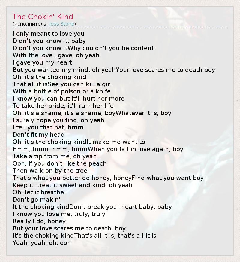 А как ты думаешь, о чем песня "The Chokin' Kind" ?