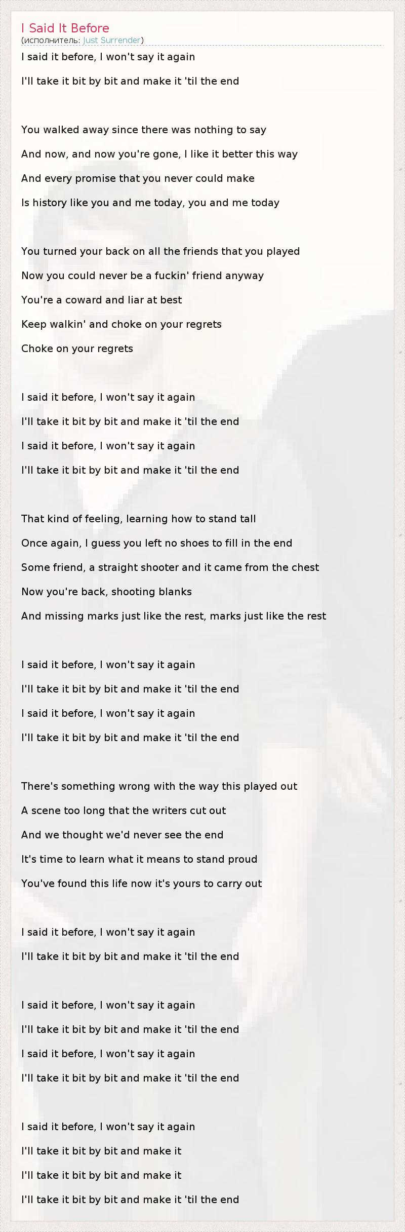 А как ты думаешь, о чем песня "I Said It Before" ?