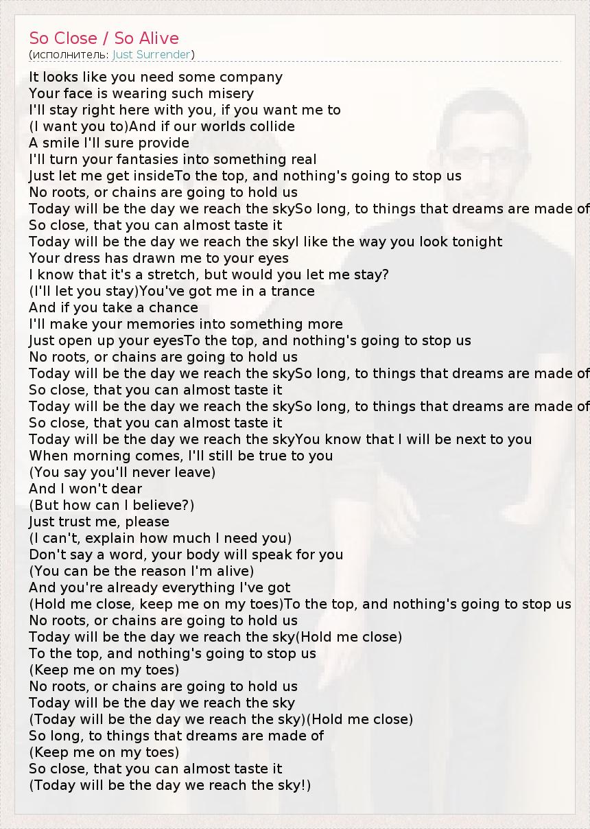 А как ты думаешь, о чем песня "So Close / So Alive" ?
