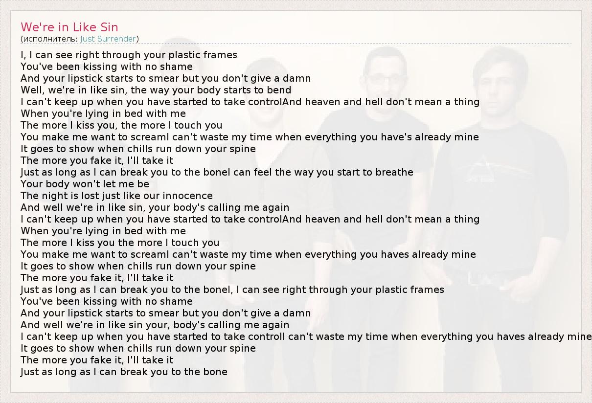 А как ты думаешь, о чем песня "We're in Like Sin" ?