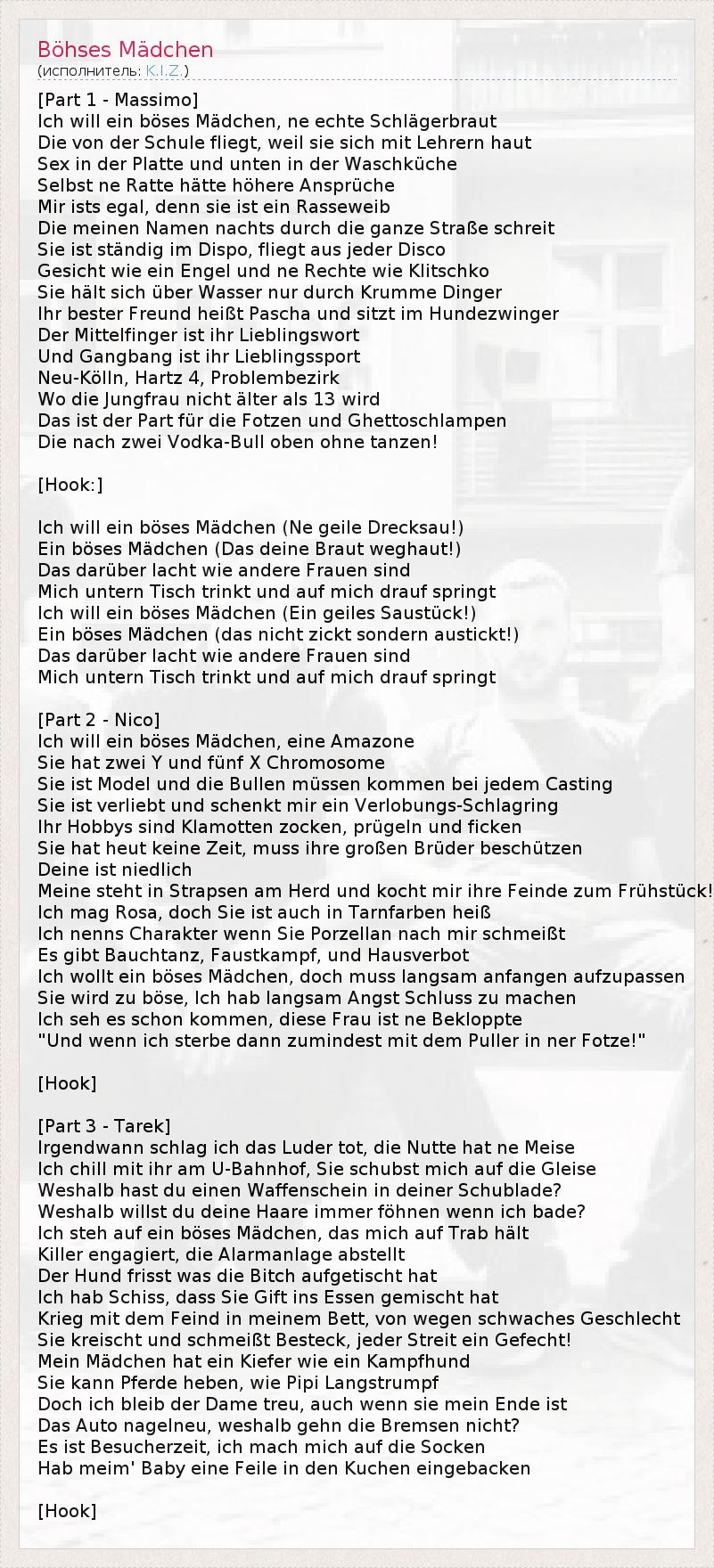 А как ты думаешь, о чем песня "Böhses Mädchen" ?