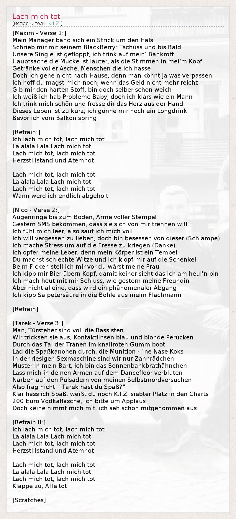 А как ты думаешь, о чем песня "Lach mich tot" ?