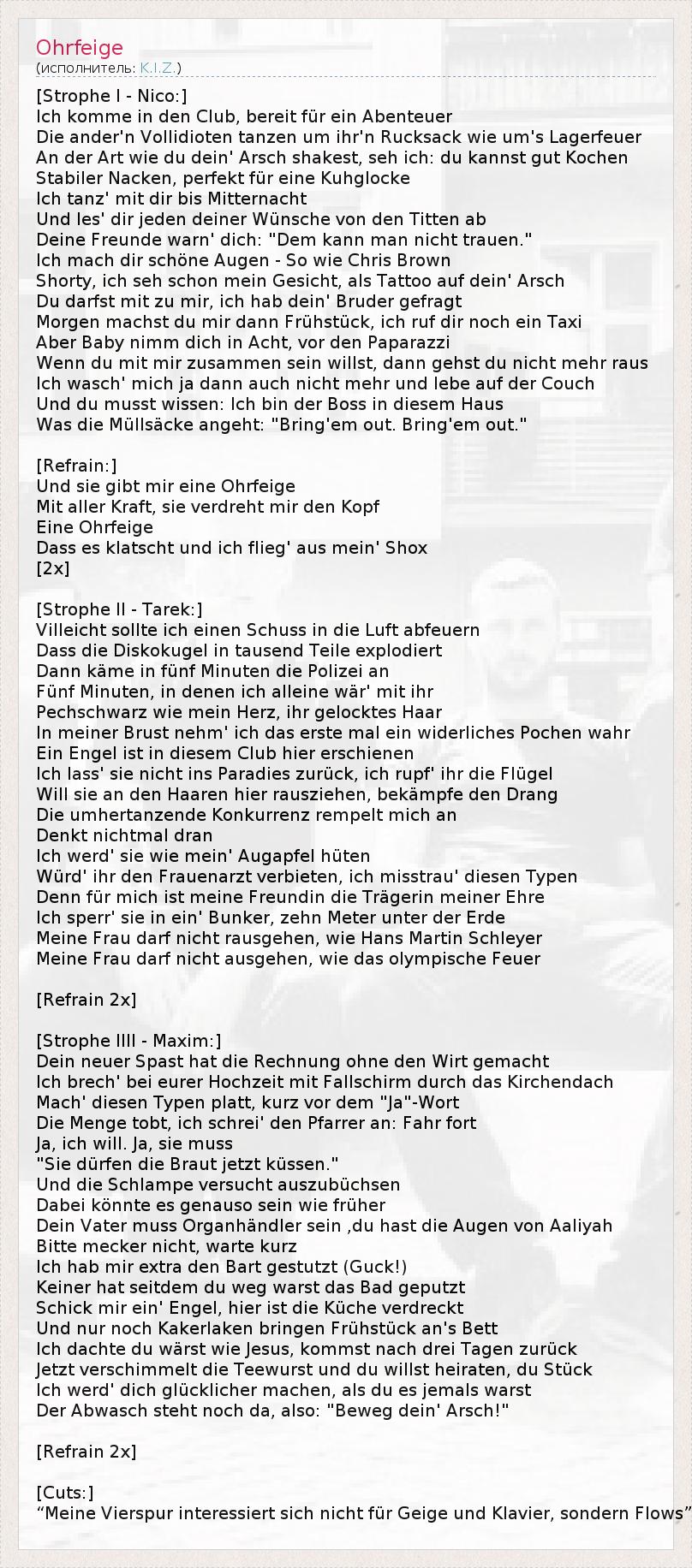 А как ты думаешь, о чем песня "Ohrfeige" ?