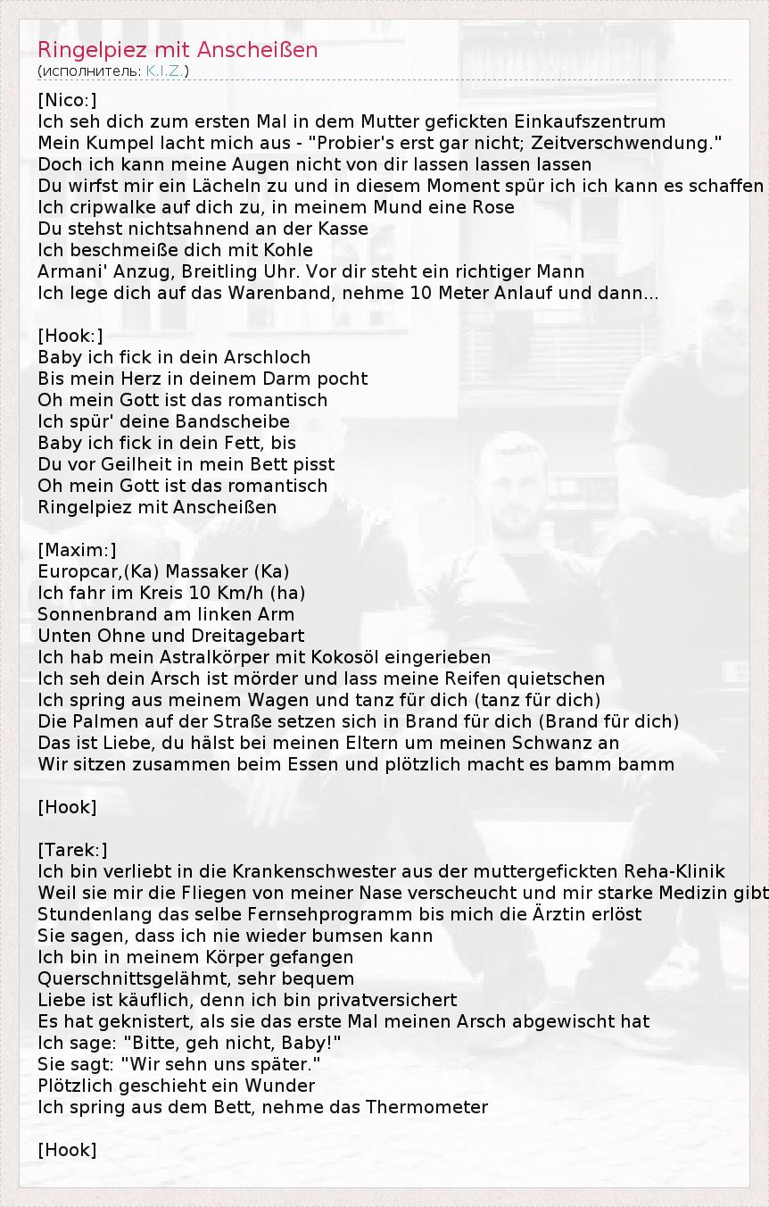ГлавнаяИсполнителиK.I.Z.Ringelpiez mit Anscheißen