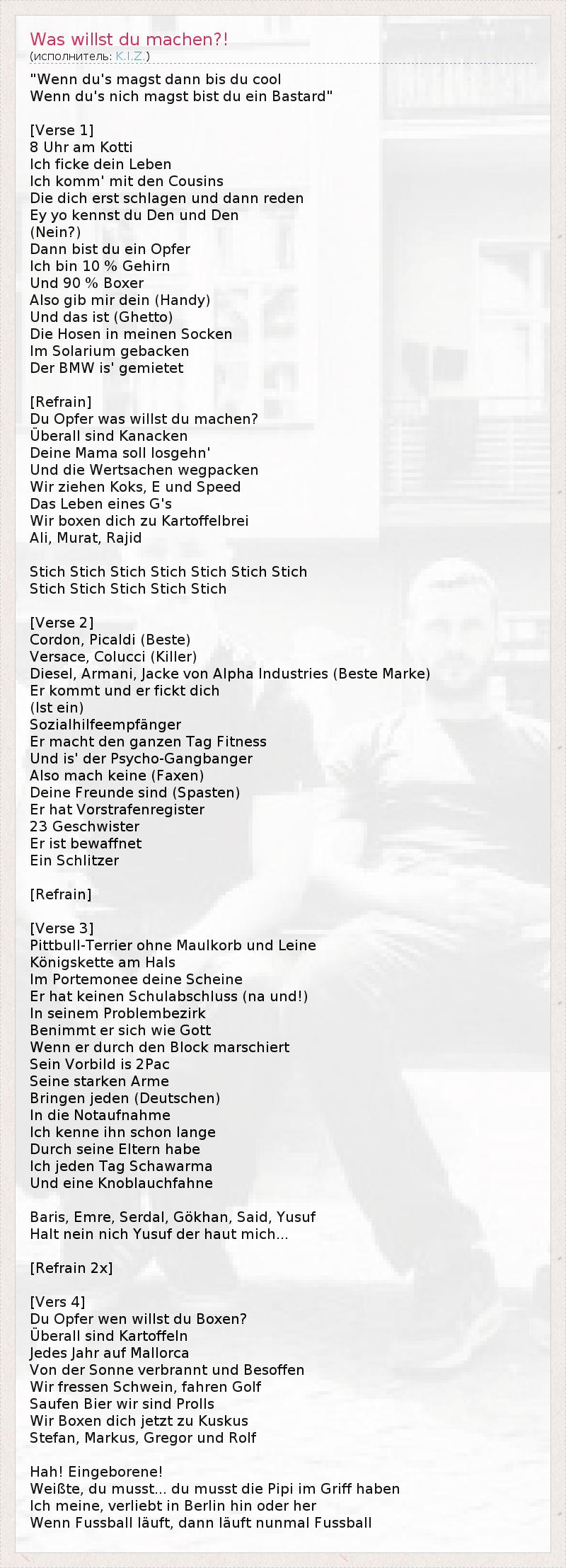А как ты думаешь, о чем песня "Was willst du machen?!" ?
