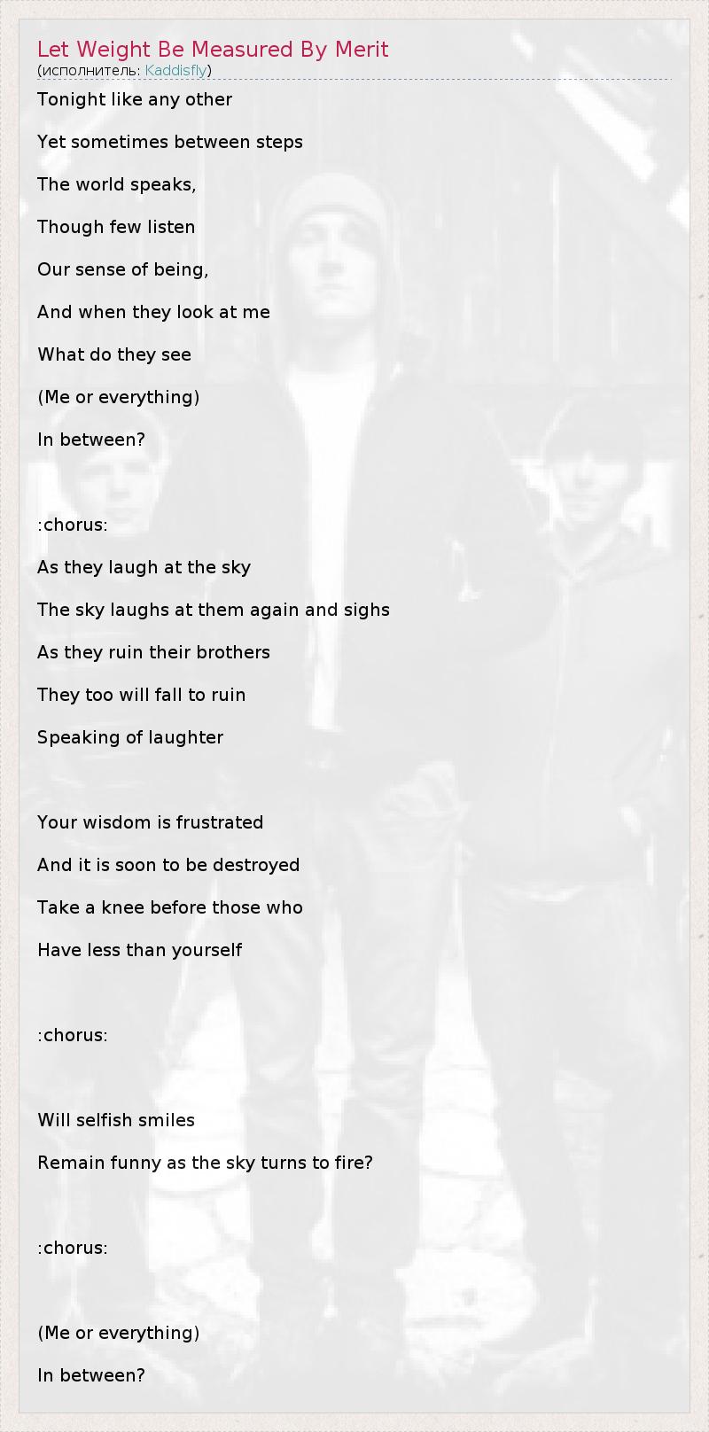 А как ты думаешь, о чем песня "Let Weight Be Measured By Merit" ?