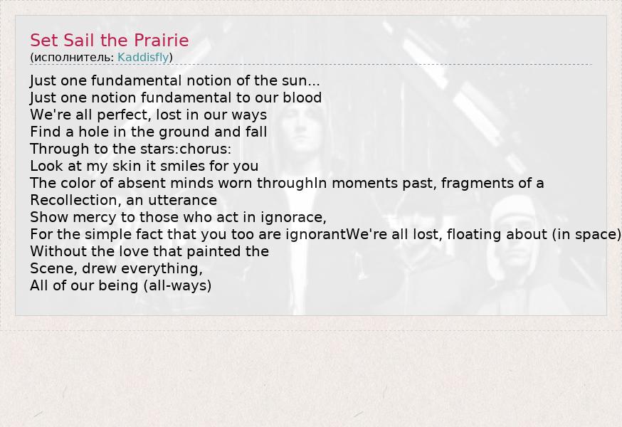 А как ты думаешь, о чем песня "Set Sail the Prairie" ?