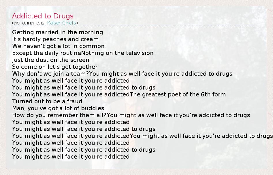 You might as well face it you're addictedYou might as well face it you're addicted to drugs