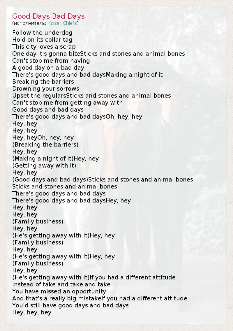 А как ты думаешь, о чем песня "Good Days Bad Days" ?