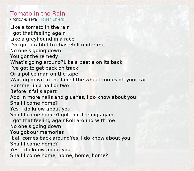 А как ты думаешь, о чем песня "Tomato in the Rain" ?
