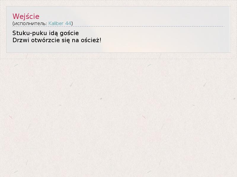 А как ты думаешь, о чем песня "Wejście" ?