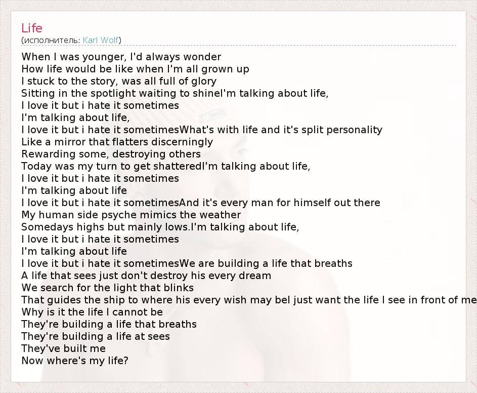 I love it but i hate it sometimesWhat's with life and it's split personality