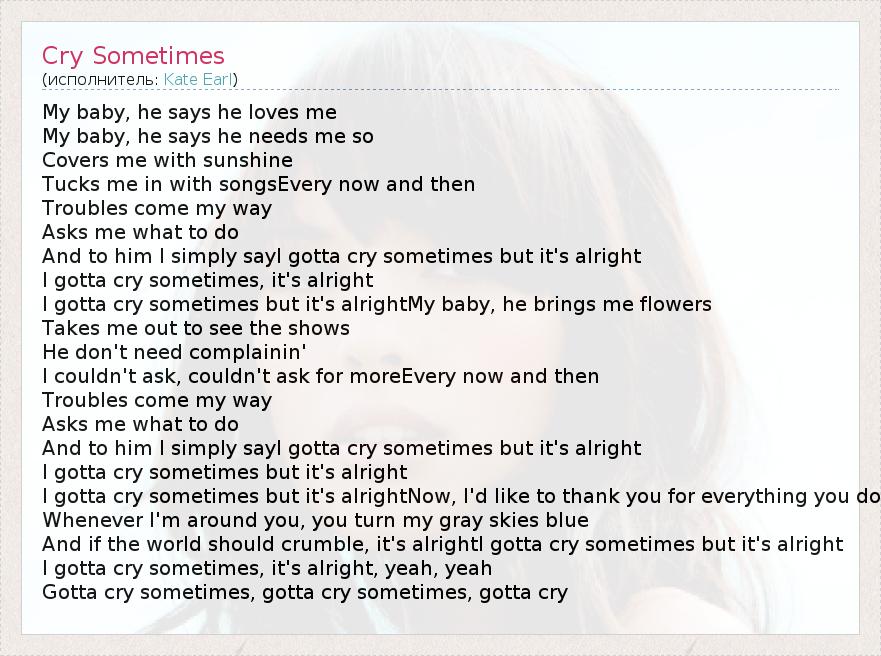 А как ты думаешь, о чем песня "Cry Sometimes" ?