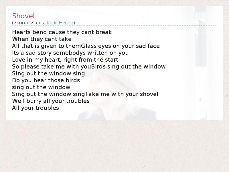 Sing out the window singTake me with your shovel