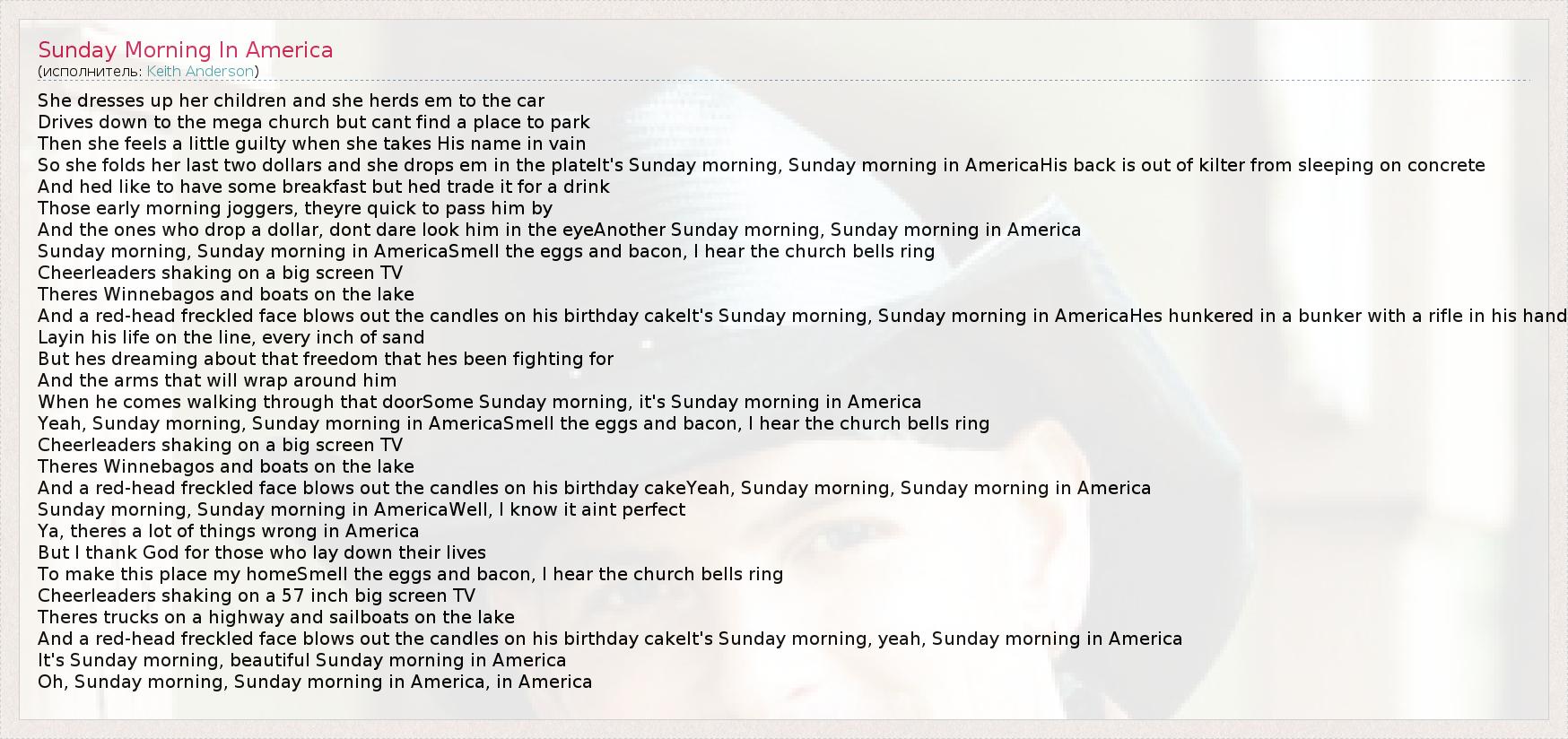 ГлавнаяИсполнителиKeith AndersonSunday Morning In America