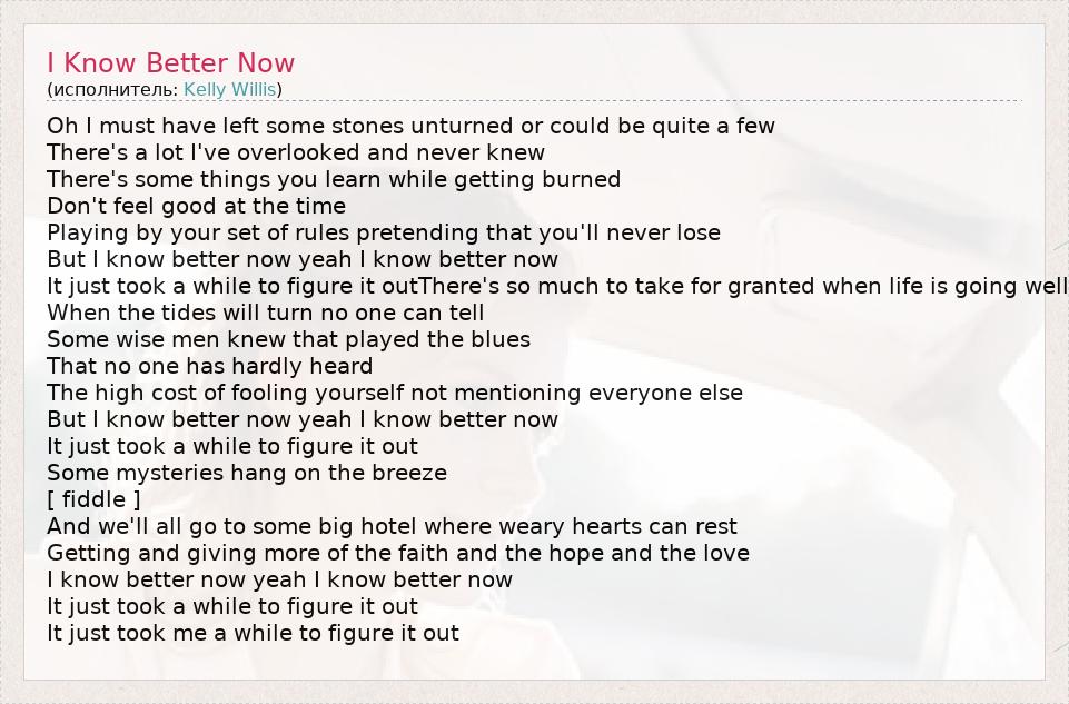 А как ты думаешь, о чем песня "I Know Better Now" ?