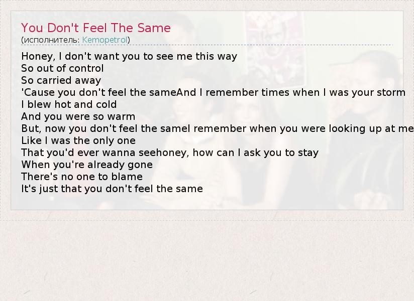 А как ты думаешь, о чем песня "You Don't Feel The Same" ?