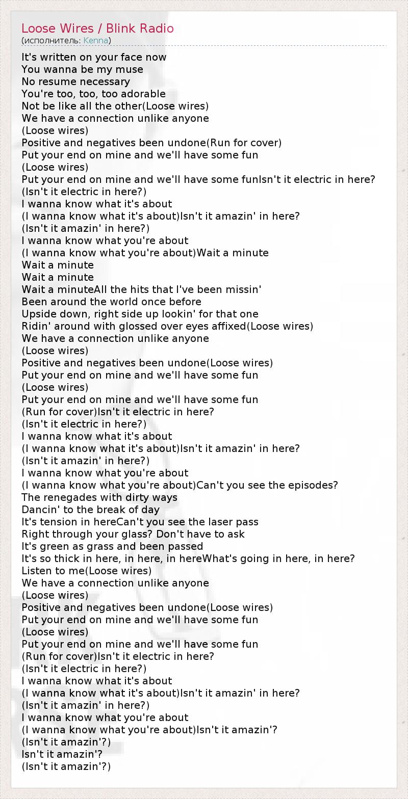 А как ты думаешь, о чем песня "Loose Wires / Blink Radio" ?