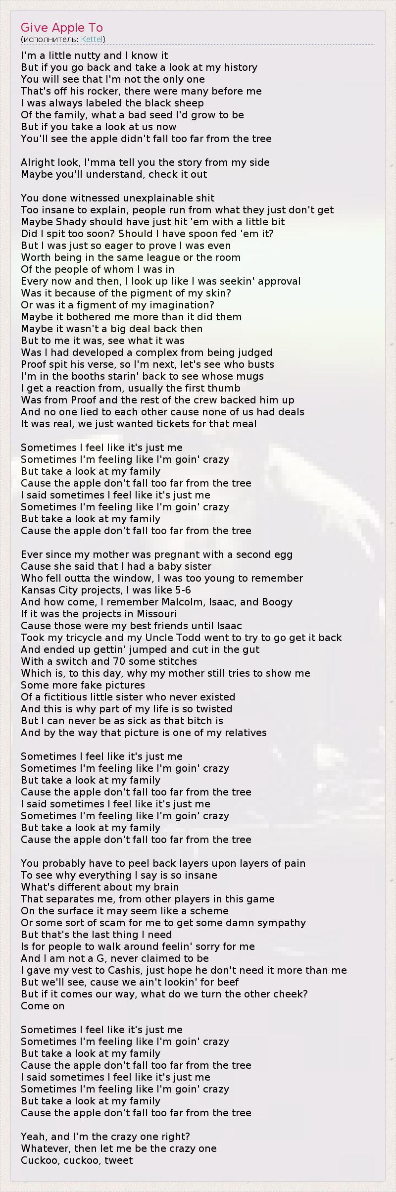 А как ты думаешь, о чем песня "Give Apple To" ?