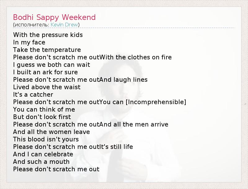 А как ты думаешь, о чем песня "Bodhi Sappy Weekend" ?