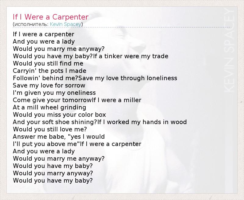 А как ты думаешь, о чем песня "If I Were a Carpenter" ?