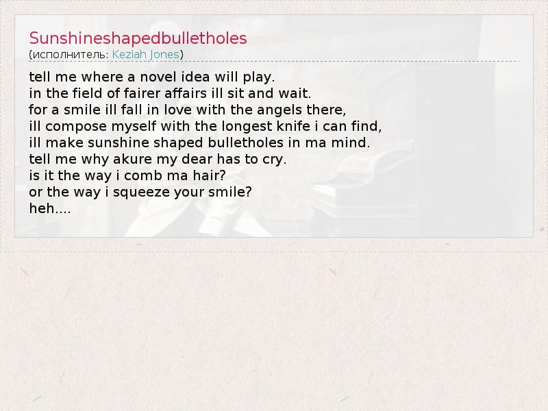 А как ты думаешь, о чем песня "Sunshineshapedbulletholes" ?