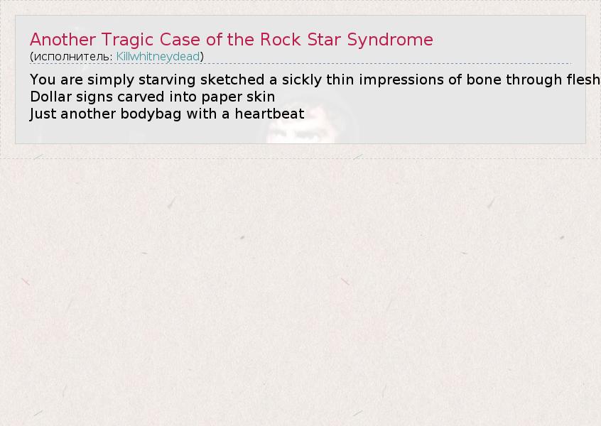 А как ты думаешь, о чем песня "Another Tragic Case of the Rock Star Syndrome" ?