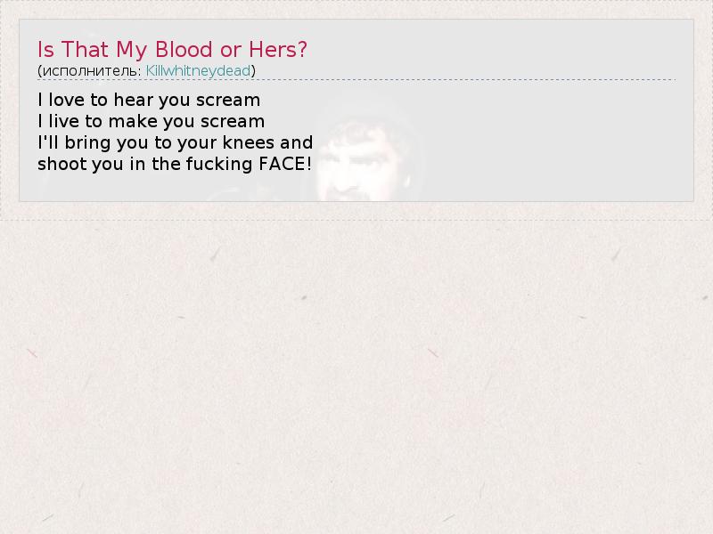ГлавнаяИсполнителиKillwhitneydeadIs That My Blood or Hers?