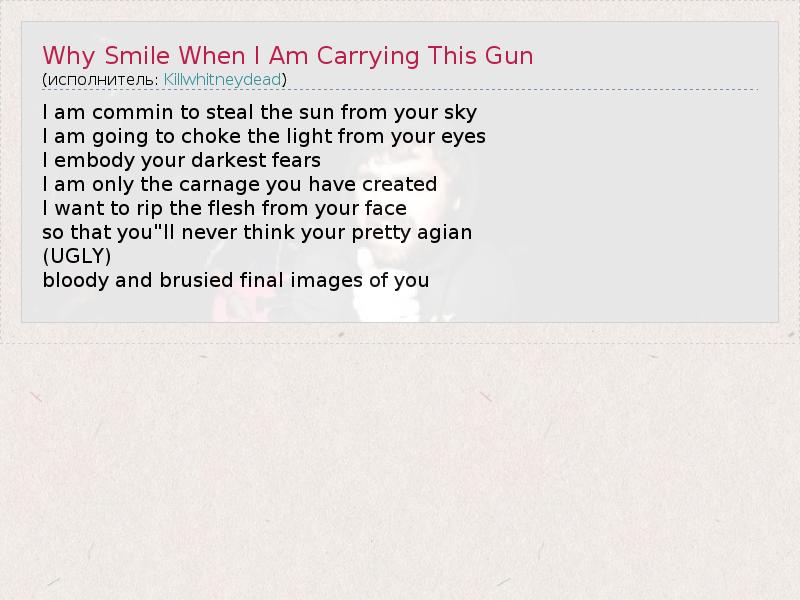 А как ты думаешь, о чем песня "Why Smile When I Am Carrying This Gun" ?