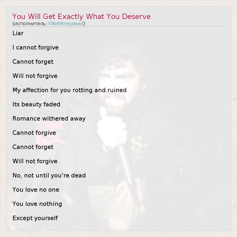 А как ты думаешь, о чем песня "You Will Get Exactly What You Deserve" ?