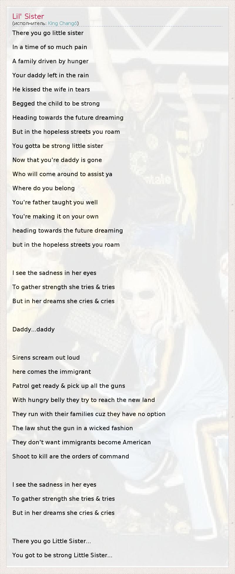 А как ты думаешь, о чем песня "Lil' Sister" ?