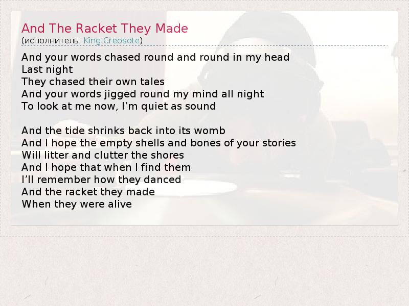 А как ты думаешь, о чем песня "And The Racket They Made" ?