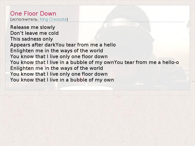 А как ты думаешь, о чем песня "One Floor Down" ?